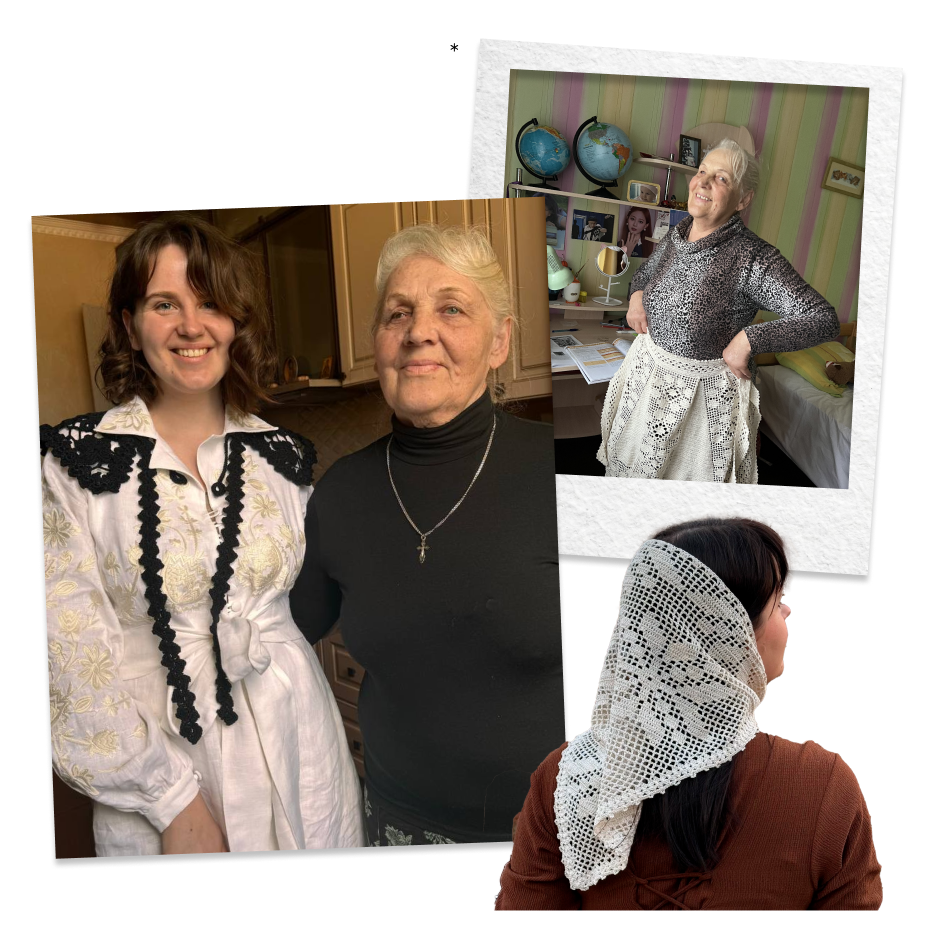 1 — вигляд на Меморіальний музей-садибу гончарської родини Пошивайлів в Опішному, 2 — фігурка від бренду полтавської художниці «Лови лева», 3 — жінка у національному вбранні, поч. XX ст., Полтава, 4 — Опанас Сластьон, «Проєкт облицювання школи у Лохвицькому земстві. 1910», зберігається у Лохвицькому краєзнавчому музеї, 5 — Василь Кричевський, «Зразок геометричного орнаменту, 1945 р.», зберігається у Сумському обласному художньому музеї імені Никанора Онацького, 6 — фото сорочок із експозиції Музею мистецької родини Кричевських в Опішному