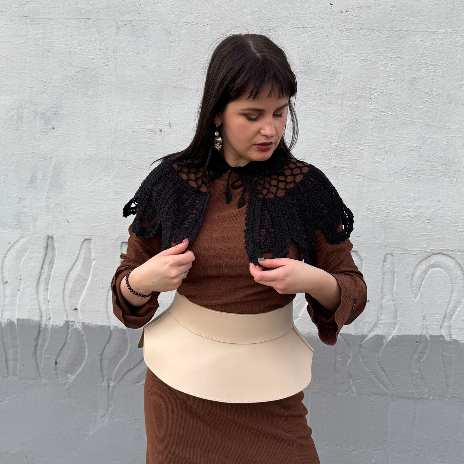 Комір може бути в молочному, білому чи чорному кольорах. Можна носить і на блузки, і на светри, і до платтів, і навіть на піджак чи пальтечко.